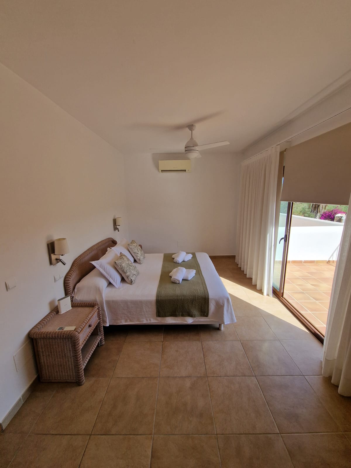 Au premier étage, vous trouverez la chambre principale, un espace de rêve avec un lit de 180 cm, une salle de bain avec baignoire XL, une douche et une terrasse privée pour profiter des nuits étoilées d'Ibiza.