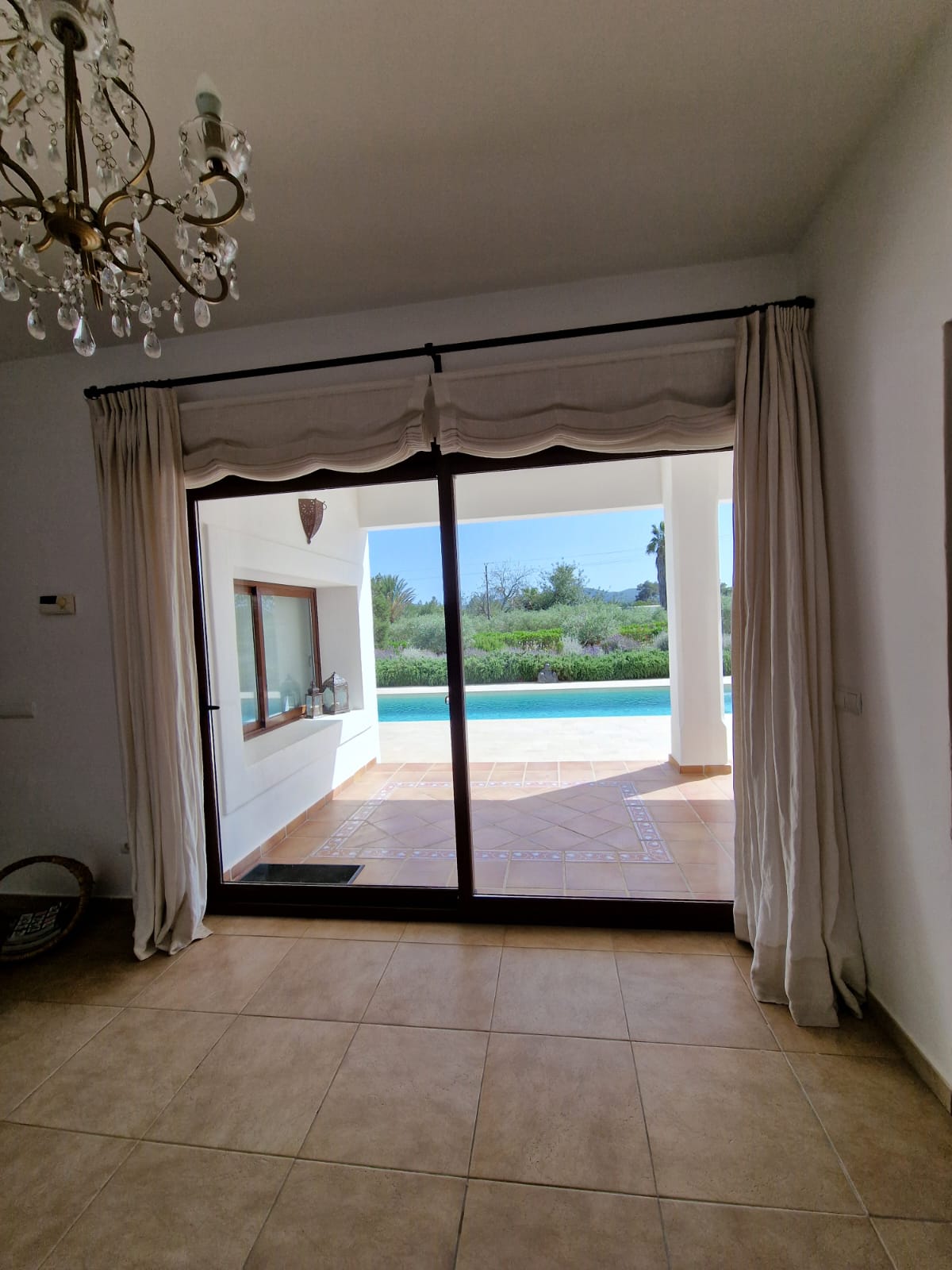 L'extérieur de la Casa Serena est un paradis méditerranéen. La spacieuse piscine au sel de 3,5 x 11 mètres est entourée d'un jardin soigneusement conçu avec des chaises longues, des parasols et un chill-out qui vous invite à profiter du soleil d'Ibiza. Le barbecue à cinq brûleurs est idéal pour préparer de délicieux banquets en plein air, tandis que la table pour 10 personnes vous permet de partager des moments spéciaux avec votre famille ou vos amis.
